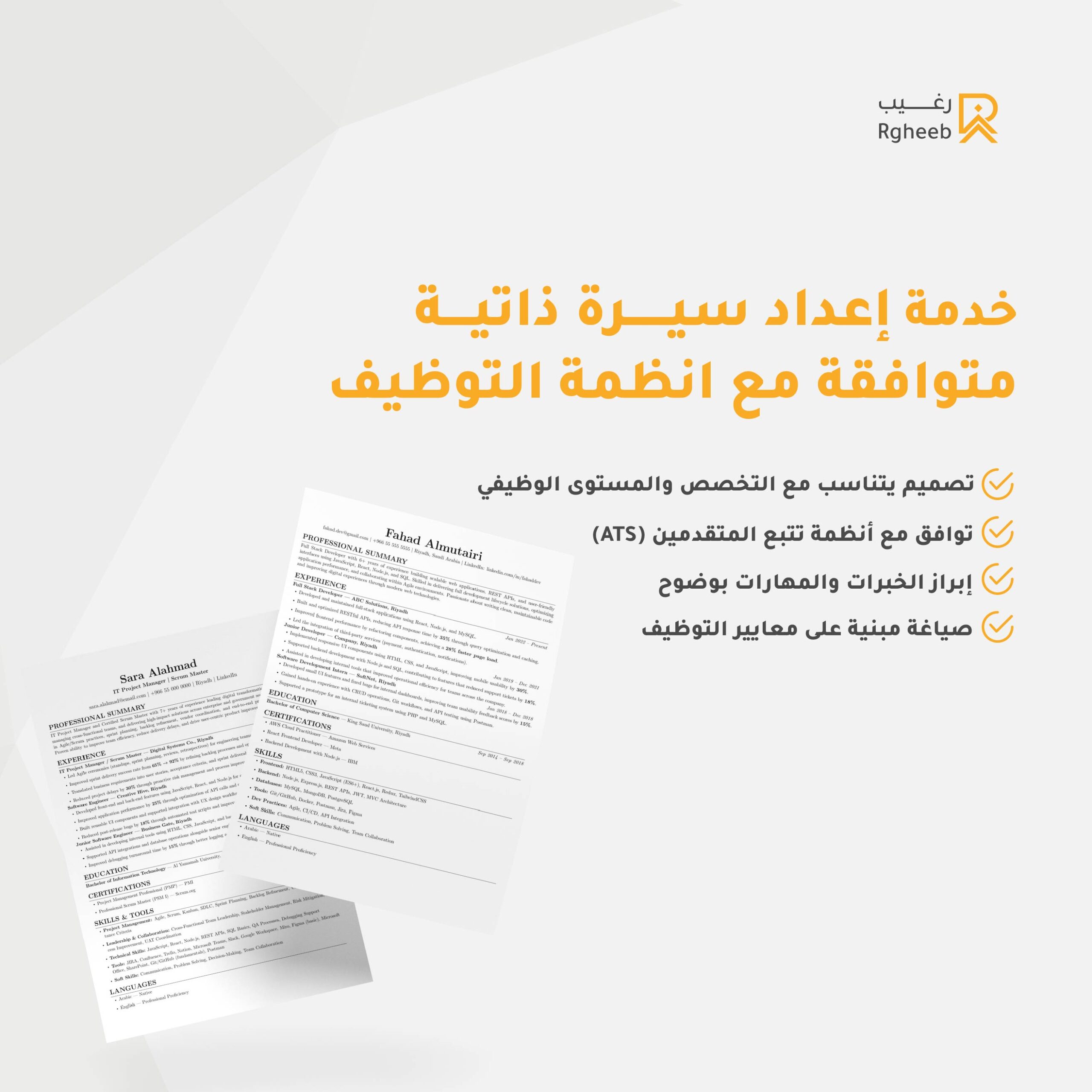 نؤمن أن السيرة الذاتية ليست مجرد مستند تعريفي، بل وثيقة تعكس القيمة المهنية والخبرة العملية